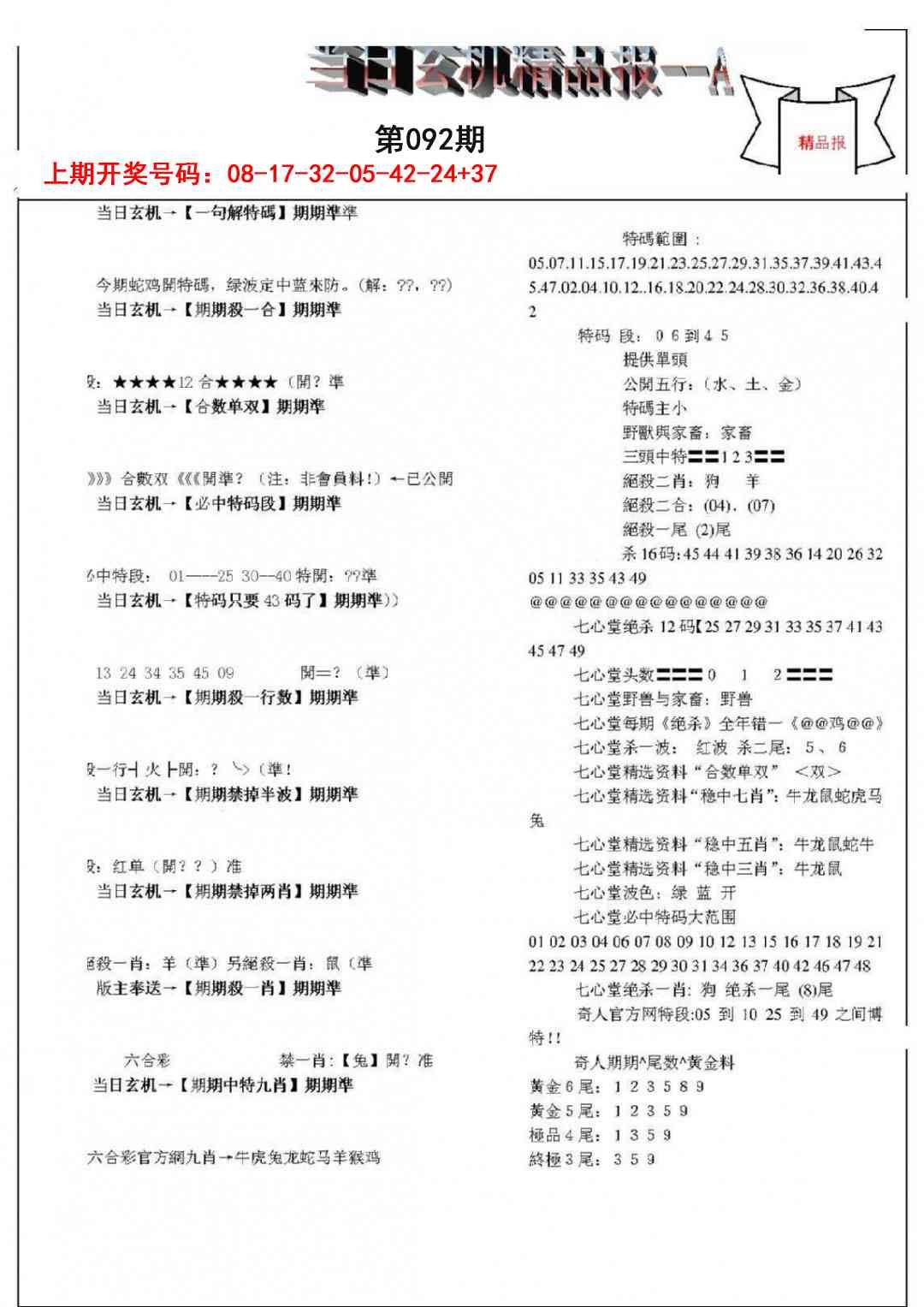 当日玄机精品报A